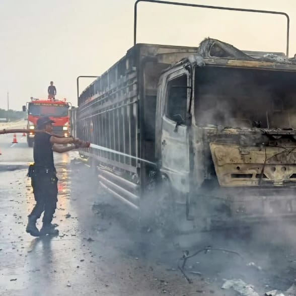 Tim Karhutla Lanud BNY Gerak Cepat Bantu Padamkan Truk Terbakar di Ruas Tol Terbanggi Besar-Kayu Agung