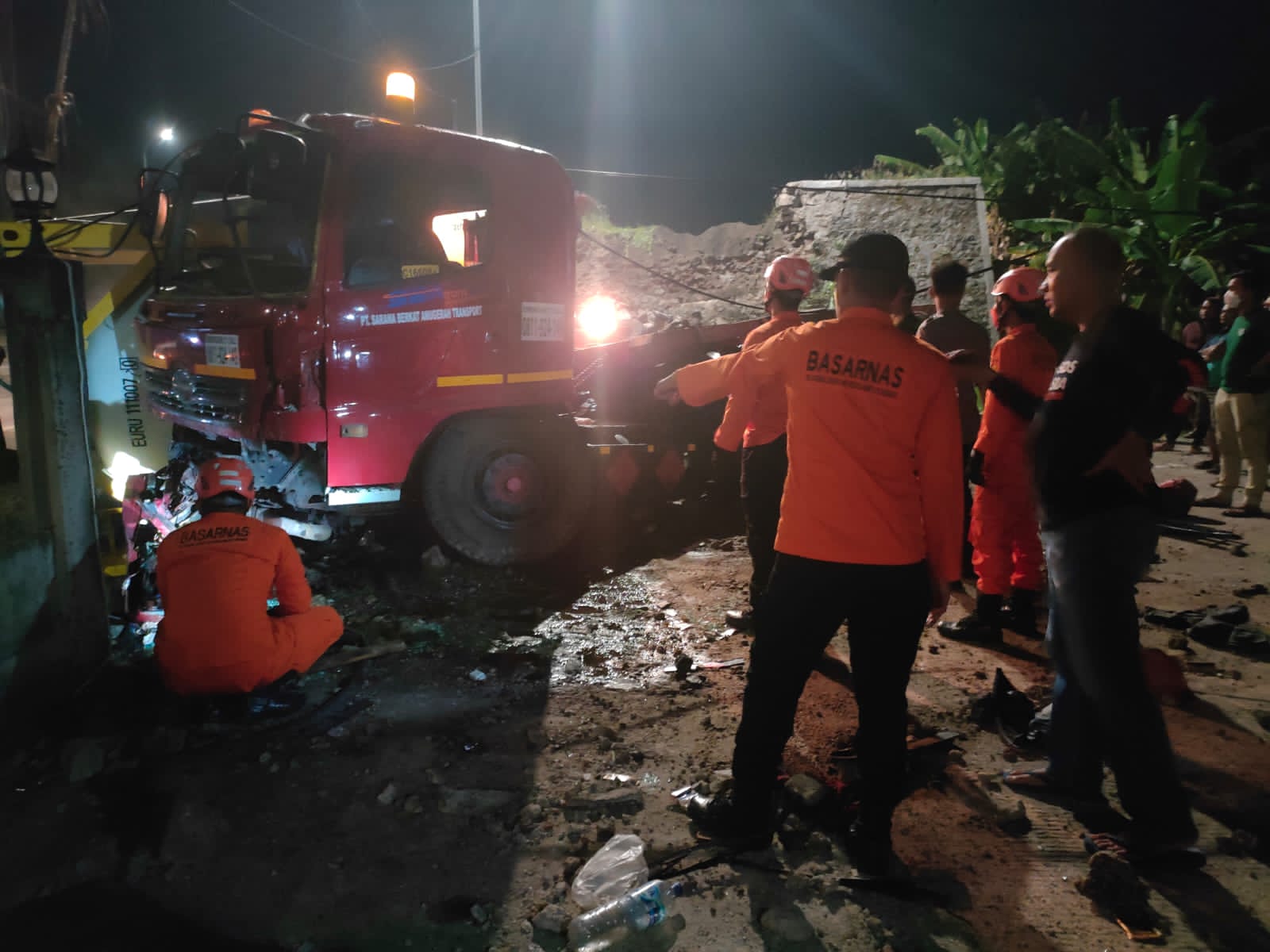 Lampung Selatan – Tim SAR Gabungan evakuasi korban akibat terjepit truk muatan H2O yang diduga alami rem blong di Pelabuhan Bakauheni, Lampung Selatan, Selasa (6/9).
