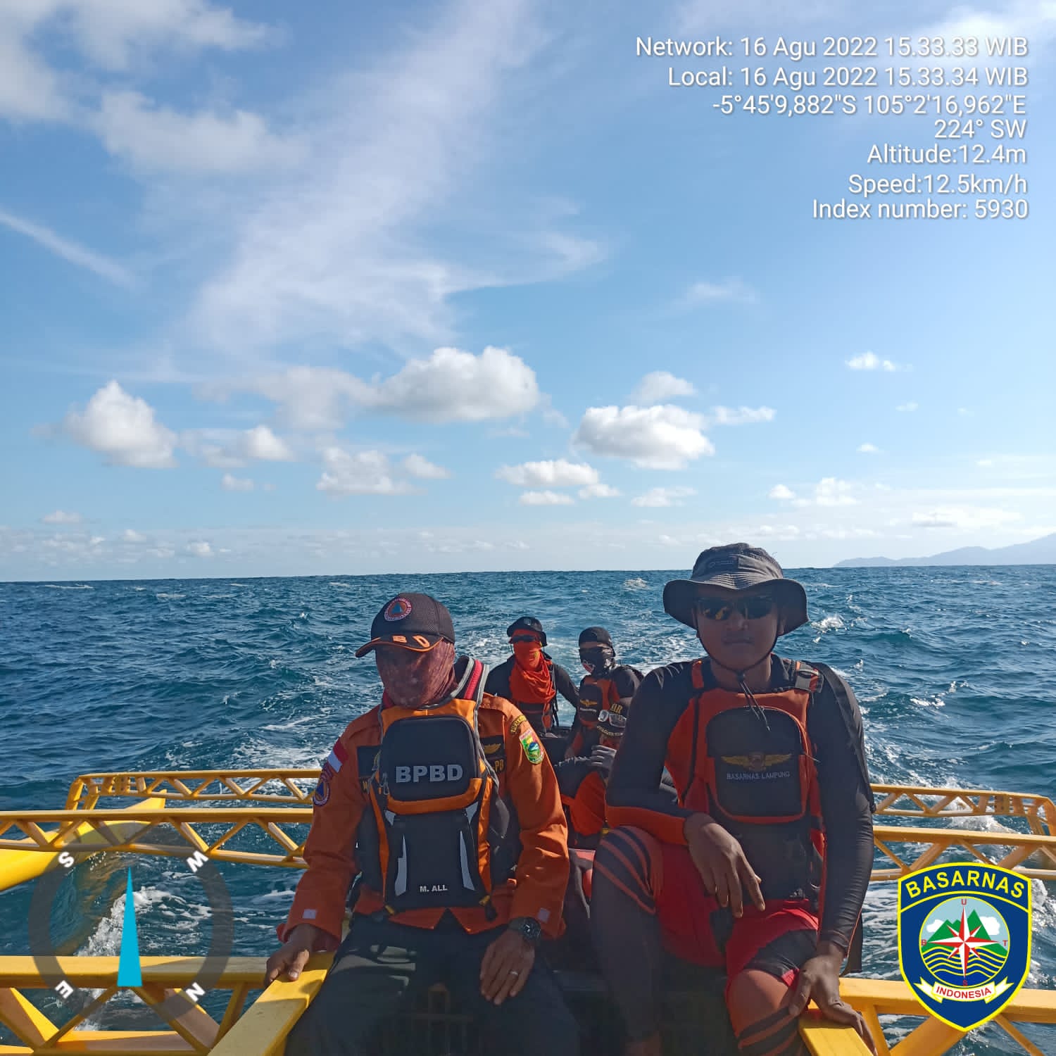 Tim Pos SAR Tanggamus tiba di lokasi kejadian pada Selasa (16/8) pukul 00.10 WIB. Selanjutnya tim berkoordinasi dengan unsur yang sudah berada di lokasi dan langsung melaksanakan pencarian secara visual dengan penyisiran via darat di tepi pantai sekitar lokasi kejadian.