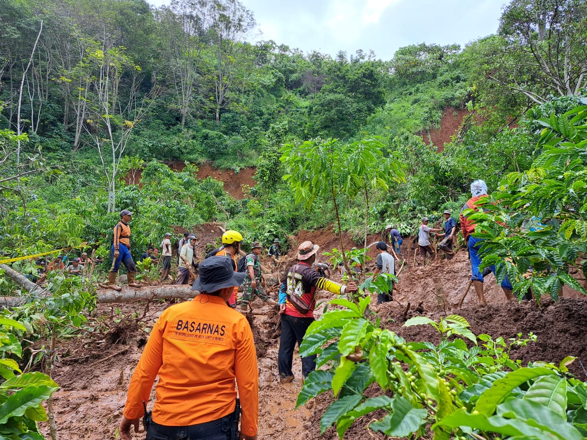 Way Kanan – Tim SAR Gabungan lakukan pencarian terhadap warga Banjit yg tertimpa longsor pada Sabtu (11/3).