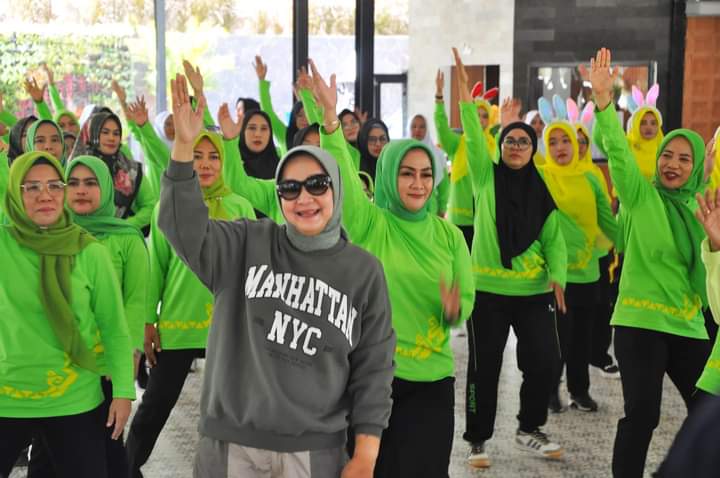 Dalam Kegiatan Temu Kader 2023 yang diikuti oleh kurang lebih 250 kader PKK se-Provinsi Lampung, Ketua TP PKK Provinsi Lampung, Riana Sari Arinal melakukan olahraga senam bersama “Senam Lampung Berjaya” yang dipandu oleh Instruktur Linda Kurniasari dan Mayasari.