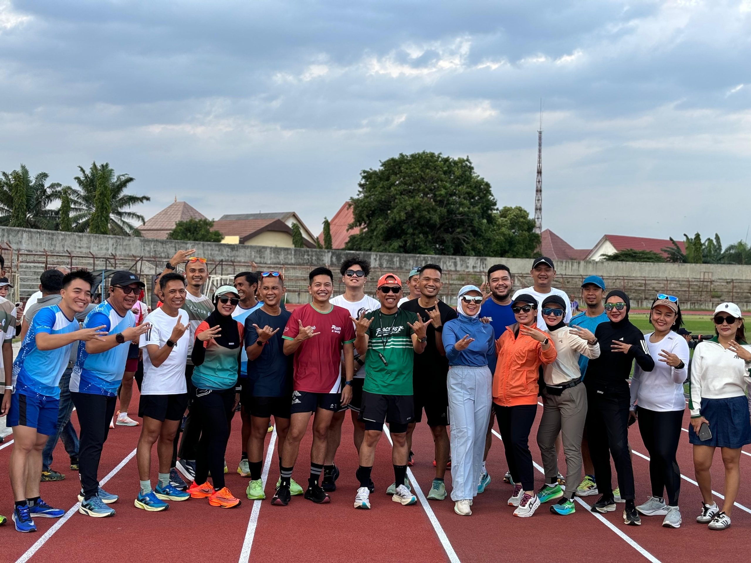 Bandar Lampung — Istri Gubernur Lampung terpilih, Purnama Wulan Sari, yang akrab disapa Batin Wulan, bersama komunitas lari menjajal jogging track baru di Stadion Sumpah Pemuda, PKOR Wayhalim, Bandar Lampung, Selasa sore (31/12). Dalam kegiatan ini, mereka menempuh jarak sekitar 3 kilometer dengan mengelilingi stadion.