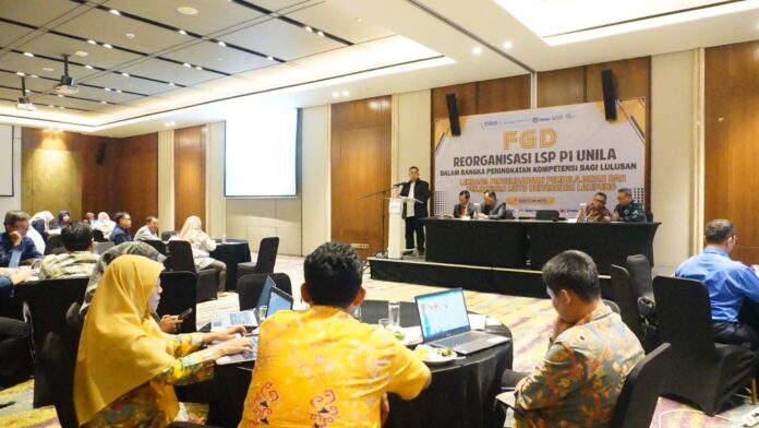 Bandarlampung – Lembaga Pengembangan Pembelajaran dan Penjaminan Mutu (LP3M) Universitas Lampung (Unila) mengadakan focus group discussion (FGD) tentang Reorganisasi Lembaga Sertifikasi Profesi Pihak 1 (LSP P1) Unila dalam Rangka Peningkatan Kompetensi bagi Lulusan.