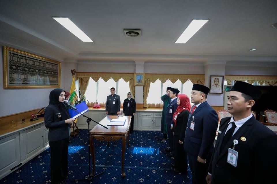 Bandar Lampung — Wakil Gubernur Jihan Nurlela melantik dan mengambil Sumpah/Janji Jabatan Pengawas dan Jabatan Fungsional di lingkungan Pemerintah Provinsi Lampung, di Ruang Kerja Wakil Gubernur, Kamis (25/09/2025).