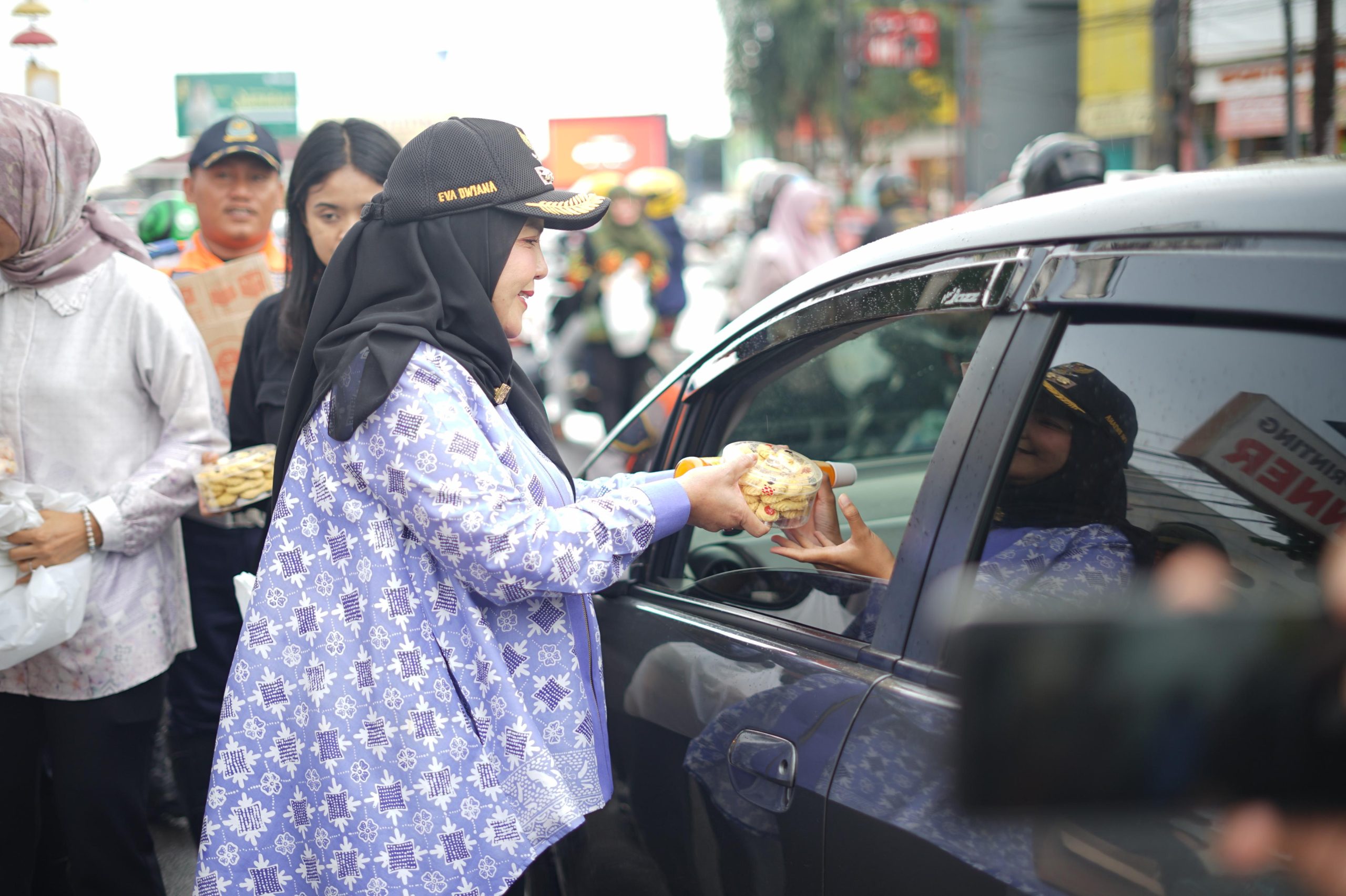 Bandarlampung – Walikota Bandar Lampung Eva Dwiana bersama Kapolresta Bandar Lampung Kombes Pol Alfret Jacob Tilukay dan Dandim 0410 Kolonel Arh Tan Kurniawan kompak bagikan takjil untuk warga Bandar Lampung.