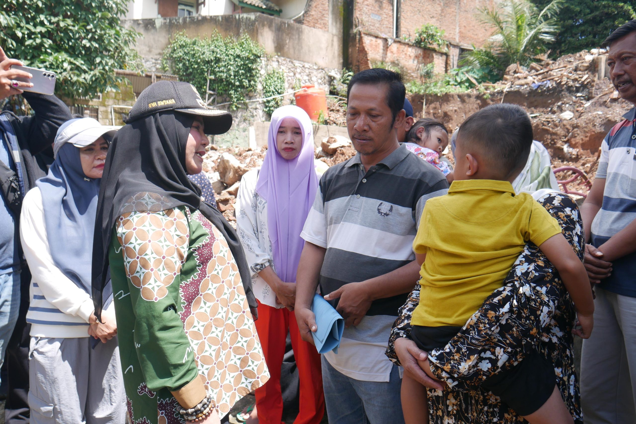 Bandarlampung – Walikota Eva Dwiana meninjau lokasi rumah yang hancur terkena longsor pada Jumat (21/2/2025) lalu yang mengakibatkan 2 orang tewas tertimpa reruntuhan di kelurahan Gedong Air, Gg. Kelinci.